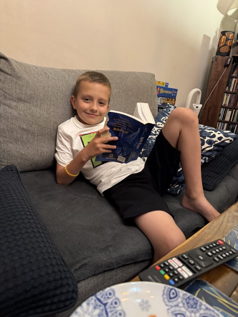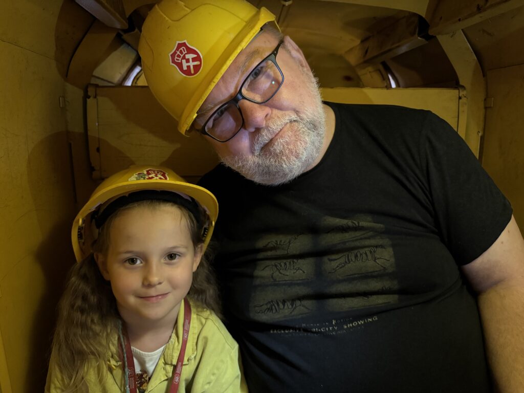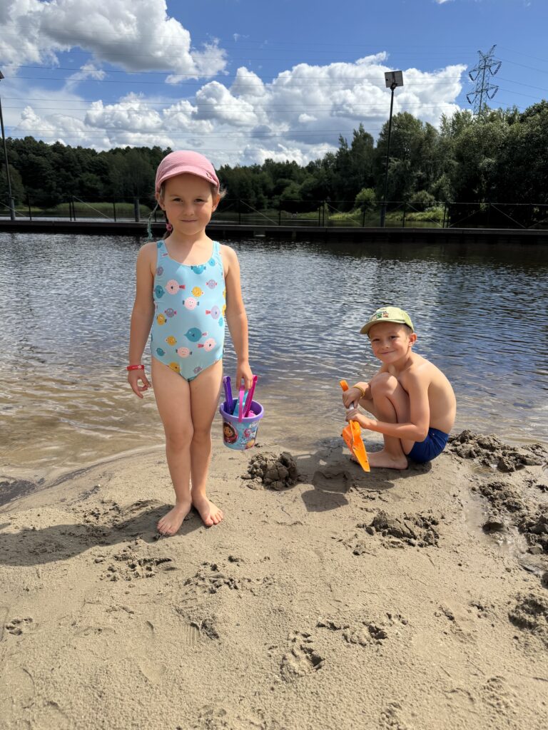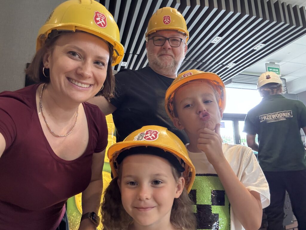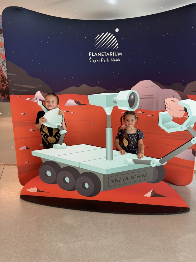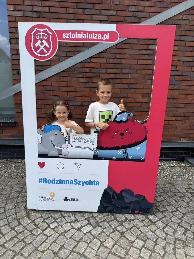 Jeden z lipcowych tygodni spędziliśmy u cioci i wujka w Katowicach. Spędziliśmy fajny czas odpoczywając i jeżdżąc na wycieczki. Do najfajniejszych należała Rodzinna Szychta w Sztolni Królowa Luiza w Zabrzu, gdzie dzieci przekonały się, jak ciężka jest praca górnika. Innego dnia byliśmy w Planetarium w Śląskim Parku Nauki – braliśmy udział w warsztatach o księżycu i oglądaliśmy film. Dzieci dostały od cioci i wujka tyty ze słodyczami, które tradycyjnie na Śląsku otrzymują dzieci rozpoczynające I klasę. Robiąc szkolne zakupy nie mogliśmy ich nie zauważyć – w sklepach jest ich mnóstwo, w różnych rozmiarach. Była to niezwykła ciekawostka, bo w Warszawie nigdy takich tyt nie widzieliśmy.