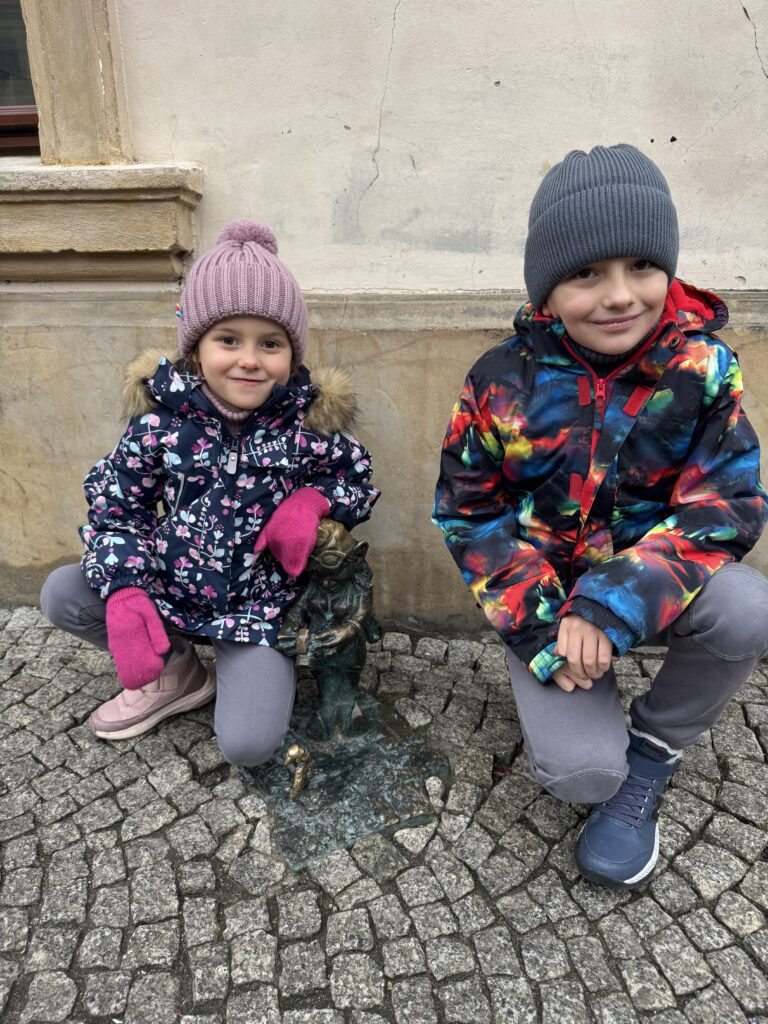 A co we Wrocławiu? Pospacerowaliśmy po Rynku, gdzie Staś odwiedził Domek Elfów, poszliśmy na przechadzkę po Ostrowie Tumskim, a na koniec odwiedziliśmy wrocławskie Fikołki. Do domu wróciliśmy z wielkim Pikachu 😂